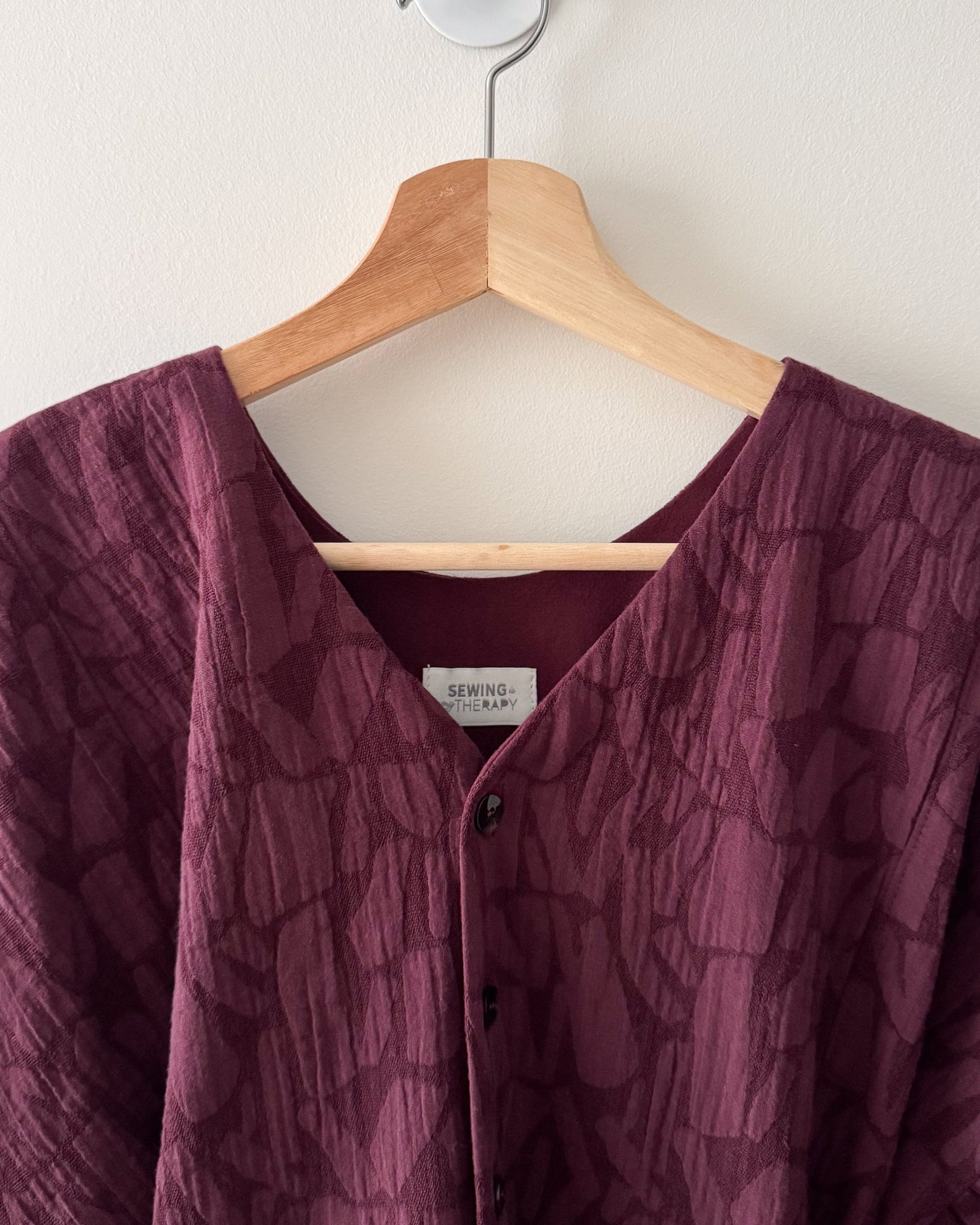 When it comes to printing the pattern at home, we offer two versions. The first is a standard version that is 36 pages and includes all pattern pieces. The second option is 18 pages, saving you paper and ink. This option provides the measurements for the Side Panel, Sleeves and Ties, rather than pattern pieces. Select the option that works best for you.