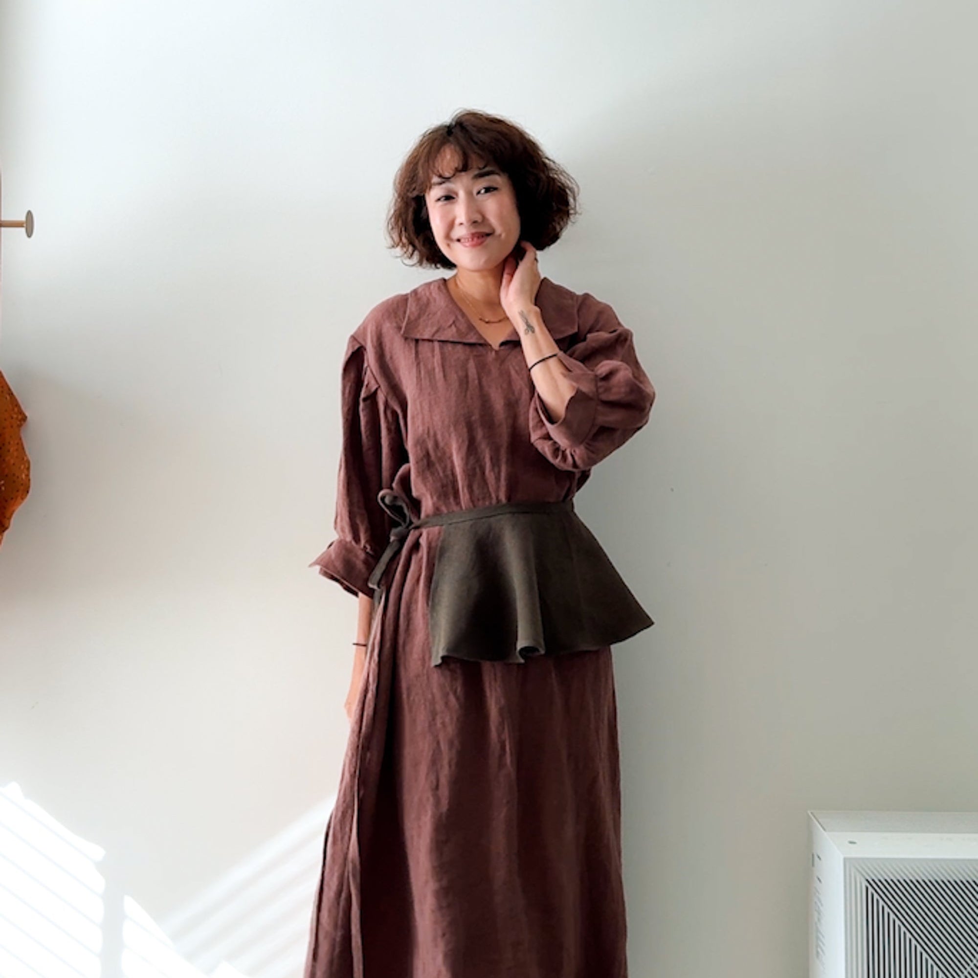Designed with sustainability in mind, it’s perfect for using remnant fabrics. Each version takes on a new personality depending on the material—linen, cotton, silk, or jacquard—making this a quick and rewarding project for creative styling.